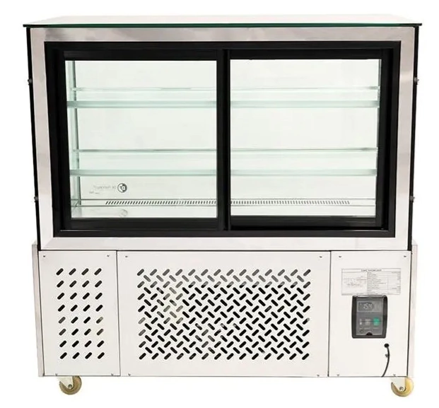 Exhibidora robusta y elegante, diseñada para mantener tortas y productos de pastelería en perfectas condiciones mientras realza su presentación. Su cúpula recta y su iluminación cálida generan una vista limpia y atractiva para el cliente.